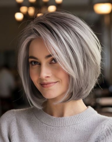 مدل موهای باب، مخصوصاً به صورت حالتدار و کمی شل و رها، میتواند یکی از بهترین انتخابها برای موهای سفید باشد. این مدل نه تنها شیک است، بلکه حجم و ساختار بیشتری به موها میدهد. مدل باب میتواند به صورت خطی یا زاویهدار باشد و اغلب به افرادی با صورتهای گرد یا مربعی میآید. با این مدل، میتوانید بخشهایی از موها را کمی پیچ و تاب دهید تا جلوهای زیبا و مدرن به وجود آید.