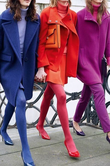 پوشیدن چندین لایه بافت متنوع از یک رنگ، به لباس عمق و بعد می بخشد و در عین حال به شما امکان می دهد قسمت های خاصی از بدن خود را برجسته یا کوچک جلوه دهید: در قسمت هایی از بدن خود که می خواهید بر آنها تأکید داشته باشید رنگ های روشن تر و تیره تر بپوشید.