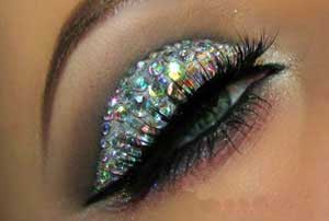 برای داشتن یک آرایش چشم زیبا از نگین های پشت چسب داری که مخصوص آرایش صورت است استفاده کرده و آنها را پشت پلک تان بچسبانید.