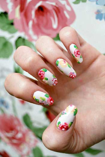 اگر می خواهید به ناخن های خود تنوع دهید، بهتر است از لاک هایی با رنگ های شاد و متنوع مانند طرح های گلدار استفاده کنید.