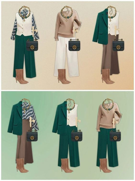 استایل مونوکروم: پوشیدن لباسهایی به یک طیف رنگی، از جمله سبز یشمی، میتواند یک استایل شیک و جسورانه ایجاد کند.