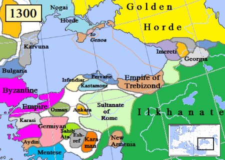 در طول سدهٔ 13 میلادی، کومننوس در درگیریهای مستمر با سلطاننشین سلجوقی در روم بودند و سپس با ترکان عثمانی و همچنین جمهوریهای ایتالیایی قسطنطنیه، به ویژه جمهوری جنوا، وارد نبردهایی شدند. امپراتوریهای کوچک آناتولی نیز مجبور بودند برای رقابت با یکدیگر، شاهزادگان خود را با جهیزیههای گرانبها به ازدواج با یکدیگر درآورده و ازدواجهای سیاسی با تجار ونیز و جنوا راهاندازی کنند تا به نحوی که بتوانند از لحاظ سیاسی قدرت بیشتری کسب کنند و برای نگهداری از استقلال خود، در ارتباط با دیگر امپراتوریها باشند.