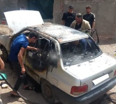 انفجار گوشی تلفن همراه، خودروی پراید را به آتش کشید