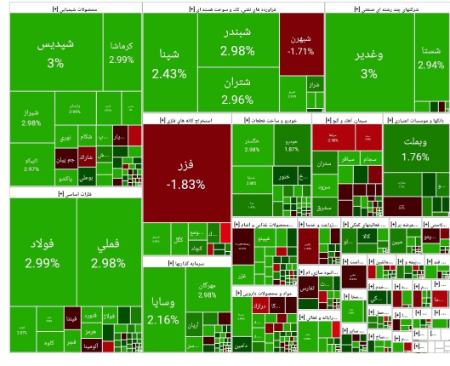 ارزش کل بازار بورس نیز بالغبر 96,477,575.695 میلیارد ریال شد.
