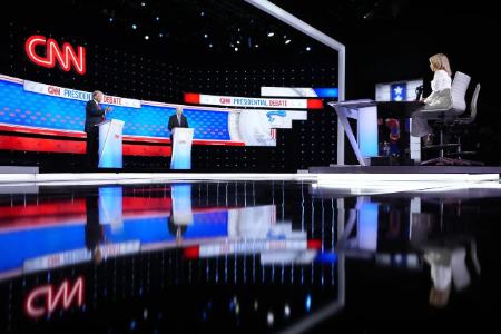 نخستین مناظره بایدن و ترامپ با حضور جیک تپر و دانا بش دو مجری سرشناس سی ان ان و بدون حضور تماشاچیان در استودیوی شبکه تلویزیونی سی ان ان در آتلانتای جورجیا برگزار شد.