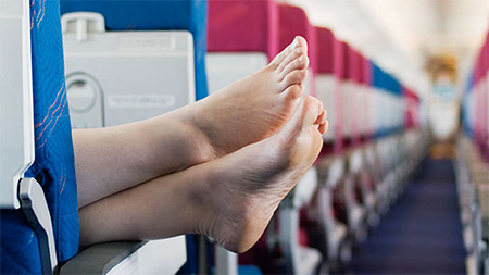 مسافران برای سوار شدن به هواپیما باید کفش داشته باشند و در طول زمان پرواز اجازه درآوردن کفش خود را ندارند، اگر کفش هایتان را درآورید، از هواپیما اخراج می شوید. یکی از دلایل آن بوی بد جوراب است که باعث ناراحتی مسافران می شود.