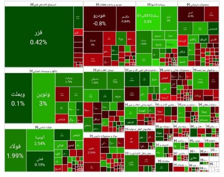 نمادهای «فولاد»، «فملی» و «شستا» بیشترین تأثیر مثبت را بر شاخص کل گذشتند.