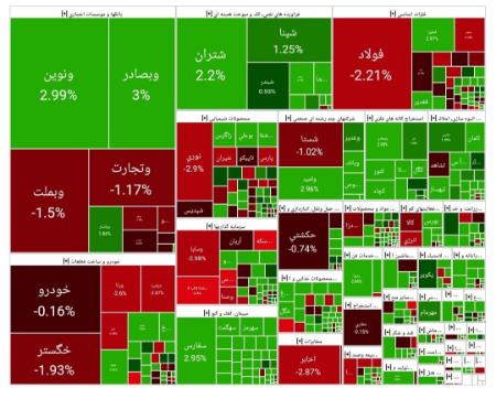 ارزش کل بازار بورس نیز بالغبر 99,697,098.927 میلیارد ریال شد.