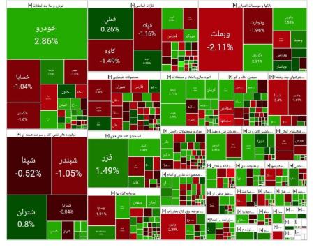 نمادهای «شبندر»، «وبملت» و «فولاد» بیشترین تأثیر منفی را بر شاخص کل گذاشتند.
