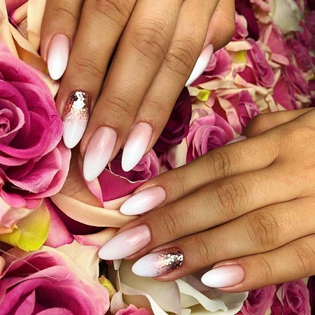 • سپس به صورت خشک قلمو را بدون برداشتن از روی ناخن تا قسمت سفید حرکت می دهیم . حرکت قلم خشک سبب می شود تا رنگ موجود در مرز بین دو رنگ به سمت رنگ سفید رفته و در آن محو شود . همانطور که اشاره شد ما رنگ های خود را به صورت 50-50 اعمال کردیم اما این اقدام آخر، آن را به 70-30 مورد نظر می رساند .