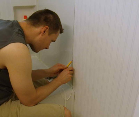 نکته: مرحله بالا را به صورتی انجام دهید که خط تا روی کاغذ دیواری نیافتد.