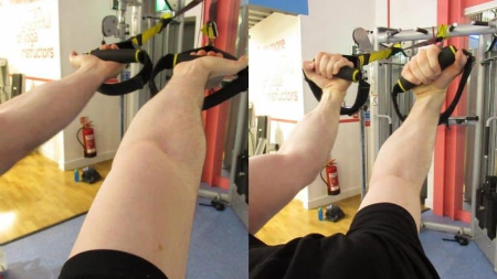 بازوهای خود را با کرلهای TRX Zottman کار کنید. این تمرین یکی از مؤثرترین تمرینات TRX برای بازوها است زیرا عملاً همه فلکسورهای بیش از حد توسعه یافته نسبت به اکستنسورهای خود دارند.