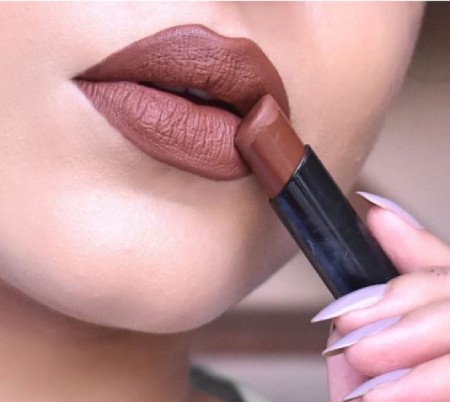 رژ لب قهوه ای مات: این نوع رژ لب جلوه ای مات و مخملی به لب ها می بخشد.