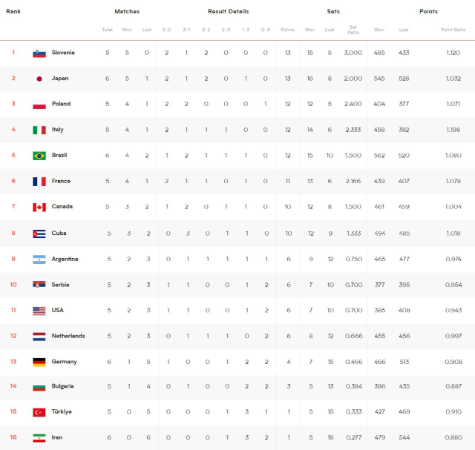 تیم ملی والیبال ایران بعداز تحمل ششمین شکست فصل خود مقابل برزیل، بدون کسب پیروزی در انتهای جدول ردهبندی جا خوش کرده است. تیم پائز فقط یک امتیاز ناشی از گرفتن دو ست در بازی با آرژانتین دارد و انتظار میرود با شکست بلغارستان و ترکیه به وضع خود در جدول سر و سامان دهد.