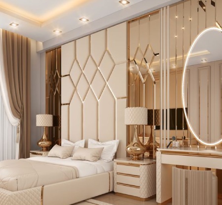 • اتاق خواب: بافت نرم آن، حس آرامش ایجاد می کند و برای دیوار پشت تخت ایده آل است، به ویژه در طرح های سه بعدی برای جلوگیری از انعکاس صدا.