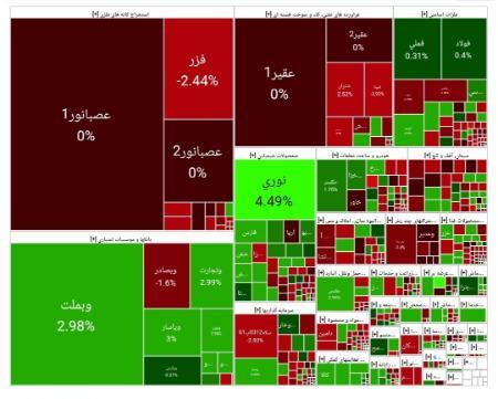 نمادهای «فولاد»، «نوری» و «فملی» بیشترین تأثیر مثبت را بر شاخص کل گذشتند.