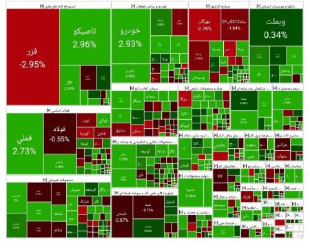 نمادهای «فملی»، «وغدیر» و «شپدیس» بیشترین تأثیر مثبت را بر شاخص کل گذاشتند.