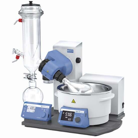 • خلأ: سیستم خلأ فشار داخل سیستم را به کمتر از فشار اتمسفری (معمولاً 10 تا 100 میلیبار) کاهش میدهد. این کاهش، نقطه جوش حلال را پایین میآورد؛ برای مثال، نقطه جوش اتانول از 78 درجه سانتیگراد به حدود 20 درجه کاهش مییابد. بخار تولیدشده به کندانسور منتقل شده، خنک میشود و به صورت مایع جمعآوری میگردد.