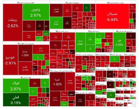 نمادهای «فارس»، «وبملت» و «عسبلان» بیشترین تأثیر منفی را بر شاخص کل گذشتند.
