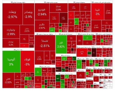 نمادهای «فارس»، «فولاد» و «فملی» بیشترین تأثیر منفی را بر شاخص کل گذاشتند.