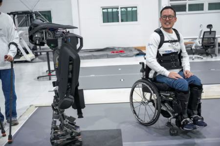 کیم گفت: هر کجا که باشم، حتی زمانی که روی صندلی چرخدار نشستهام، این ربات میتواند به من نزدیک شود و پس از اینکه آن را بپوشم، به من کمک میکند بایستم؛ این یکی از ویژگیهای بارز این ربات است.