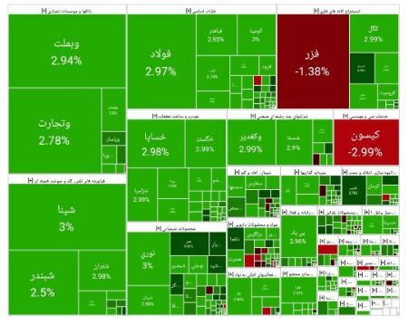 سبزپوشی بورس در نخستین روز هفته (۱۴۰۴/۰۷/۱۹)