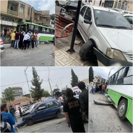 ظهر دیروز هفتم اردیبهشت، یک اتوبوس درونشهری در مسیر میدان «آزادی» تا تقاطع «سمیه» با چند خودرو برخورد کرد.
