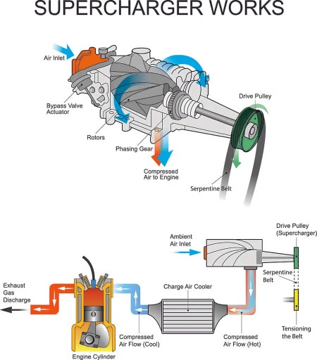 فشار دادن هوای بیشتر به داخل موتور احتراق داخلی، کارایی آن را افزایش می دهد و سوپرشارژر دقیقاً برای همین هدف طراحی شده است.