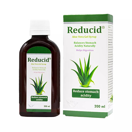 • شربت ردیوسید حاوی ژل آلوئهورا است که به تنظیم ترشح اسید معده کمک میکند.