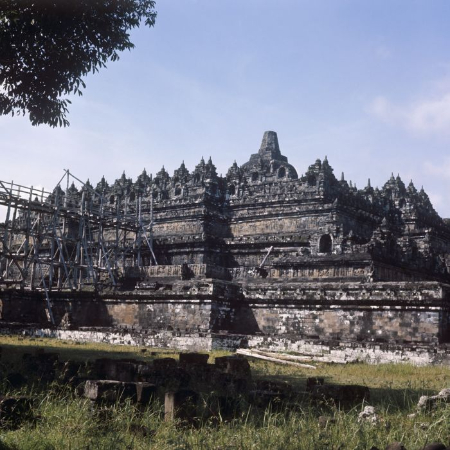 معبد بوروبودور در جاوا مرکزی، بزرگترین معبد بودایی جهان است که در قرن نهم توسط خاندان شایلندرا ساخته شد.