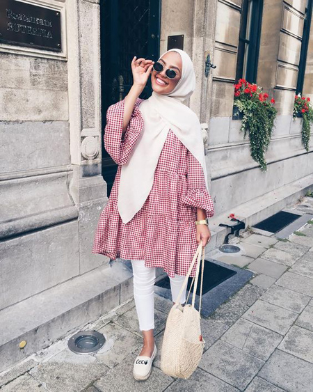 این استایل مناسب دختر خانم های جوان در روزهای گرم تابستان است. نکته کلیدی در این استایل استفاده از مانتو چهار خانه است که یکی از ترندهای این فصل است. در این استایل این مانتو زیبا به خوبی با رنگ سفید تلفیق شده است.