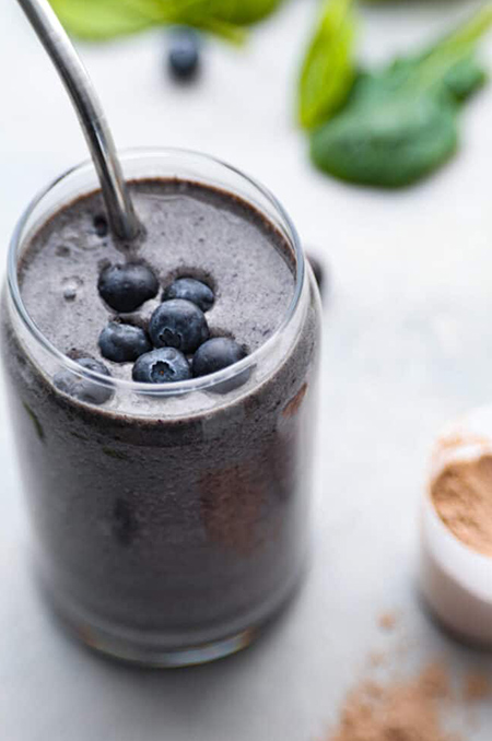 نکته کلیدی در تهیه این اسموتی پرپروتئین، افزودن مایع در ابتدا است. چه از شیر غیرلبنی استفاده کنید و چه آب میوه ای مانند آب پرتقال، ابتدا مایع را اضافه کنید تا از چسبیدن پودر پروتئین به دیواره مخلوط کن و گلوله شدن آن جلوگیری شود. می توانید برای طعمی شبیه کاسه آکای، گرانولا به روی اسموتی اضافه کنید.