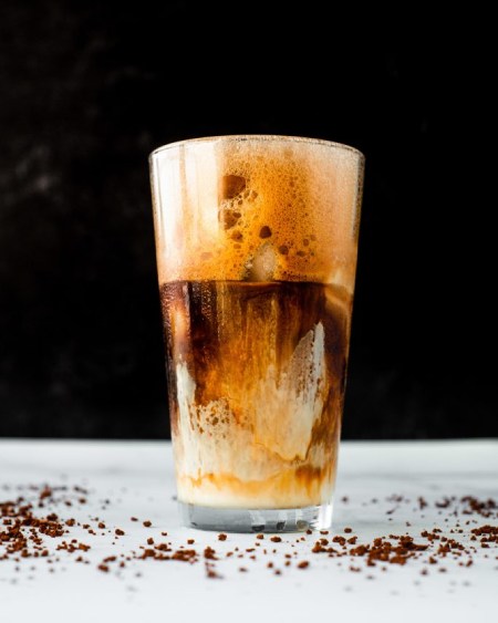 مخلوط کفدار قهوه را روی یخ بریزید.