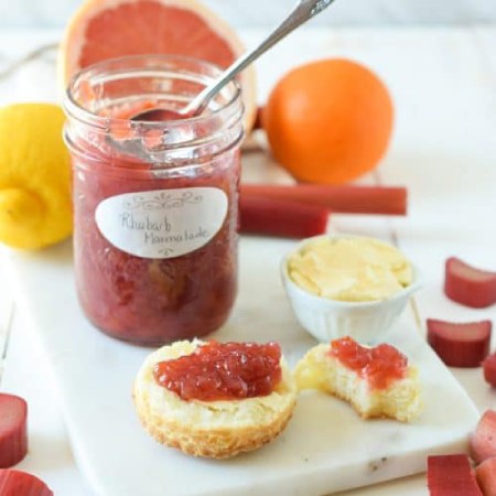 یکی از اولین چیزهایی که به محض آماده شدن ریواس درست می کنم، این مربای ریواس فوق العاده است که سال هاست آن را تهیه می کنم. این مربا تنها به پنج ماده اولیه نیاز دارد: ریواس، شکر دانه ریز، یک پرتقال، نصف گریپ فروت صورتی، و نصف لیموترش. رنگ این مربای ریواس عمیق و زیباست و طعمش تازه و کمی ترش است.