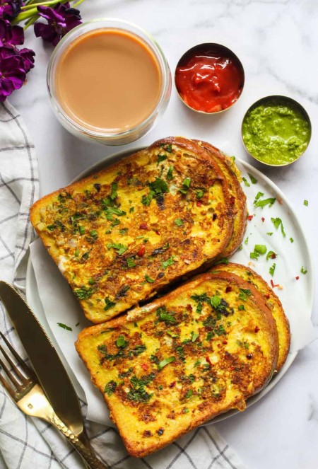 پختن این نان تست فرانسوی ماسالا به سبک هندی بسیار آسان است و بسیار سیر کننده است که می توانید آن را به عنوان یک ناهار کاری یا حتی به عنوان یک شام شب در هفته برنامه ریزی کنید. من نان تست فرانسوی تند دسی ماسالا را با سس کچاپ، چاتنی سبز یا سیرراچای تند سرو می کنم. آیا می توانید انفجار طعم ها (تندی) را در هر لقمه تصور کنید؟ خانواده من همچنین دوست دارند این غذا را با یک فنجان چای داغ ماسالا میل کنند. این ترکیب بی نظیر است.