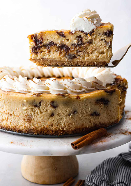 • دستوری جشن گونه و منحصربه فرد: شرط می بندم تا حالا چیزکیک با طعم رول دارچینی نخورده اید! با یک لقمه، کاملاً شیفته اش خواهید شد!