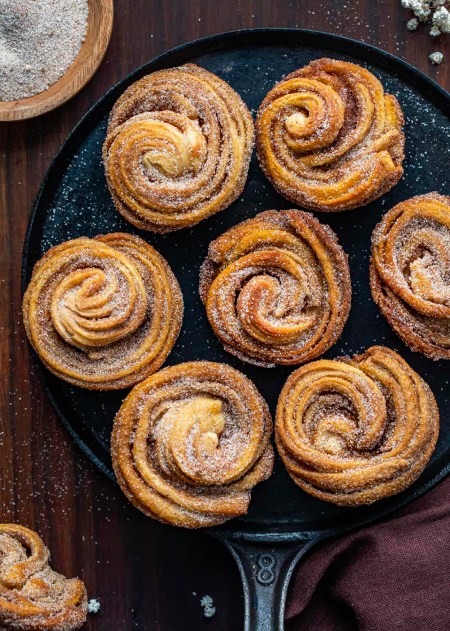 اگر تا به حال کروفین نخورده اید، آماده باشید که شگفت زده شوید! کروفین ترکیبی از کروسان و مافین است. لایه های نرم و لطیف کروسان که در قالب مافین پخته می شوند، شما را دیوانه خواهند کرد! این شیرینی ها شبیه رول های دارچینی هستند، چون خمیر با کره مالیده شده و با مخلوط دارچین و شکر رول می شود.