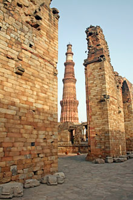 از این بناها، مسجد قوت الاسلام که در پای شمالشرقی مناره قرار دارد، از اهمیت خاصی برخوردار است چرا که اولین مسجدی است که در هند ساخته شده است. این مسجد به دستور ایبک ساخته شده و ساخت آن در سال 1193 آغاز و در سال 1197 به پایان رسید. این ساختار باشکوه شامل یک حیاط داخلی و یک حیاط بیرونی است که با ستونها و شافتهایی تزئین شدهاند که بیشتر آنها از 27 معبد هندو که برای ساخت مسجد تخریب شدند، برداشته شدهاند. یک کتیبه تحریکآمیز که بر بالای دروازه شرقی مسجد حک شده، اطلاعاتی را در این زمینه ثبت کرده که وجود تزئینات خاص هندی را در یک مسجد مسلمانان نشان میدهد.