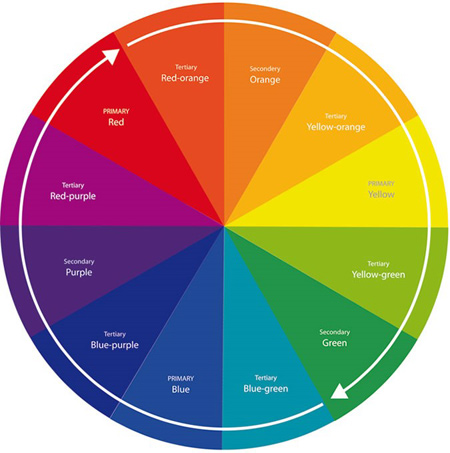 اگر در جهت عقربههای ساعت بر روی این دایره حرکت کنید، رنگهای مشابه در کنار یکدیگر قرار دارند