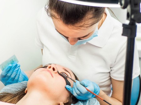 – سپس مژه ها با مواد کراتین و رنگ پوشانده می شوند.