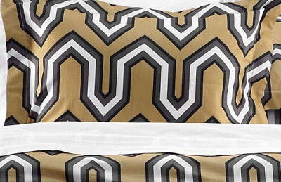 دیگر الگوی محبوب امروز ؟ شورون! مگر به جای بیش از حد ترد بودن، شورون ZIG-zags در حال حاضر به قلمرو تار، شیب فراخوانی برای یک چرخش جدید در طراحی veering. به عنوان مثال، پوشش لحاف اطلس بافت + شمس در دارچین از علم غرب ارائه می دهد را نوعی بازی ورق سه نفری اسپانیولی به سبک کلاسیک در این الگوی هندسی.