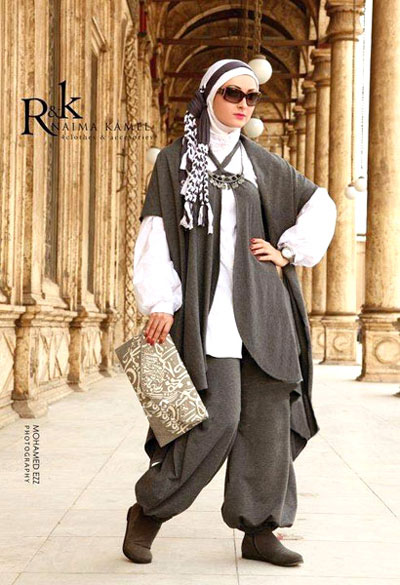 مدل های پیش روی شما قسمتی از مجموعه پاییزه R&K یک طراح مصری به نام Naima Kamel ( نایما کامل ) می باشد که حروف و گرافیک عرب و البته سبک مصری را به خوبی برای تولید مانتوها یا پوشش های منحصر به فرد خود استفاده کرده است تا هر دختر محجبه ای بتواند از حجاب و مد لذت ببرد.