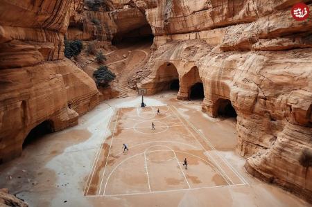 منظرۀ خیالانگیز زمینهای بسکتبال در بیابانهای عربستان