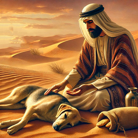 عرب گفت: “سگی داشتم که بسیار خوب و کارآمد بود. روزها شکارچی من بود و شبها نگهبان، چابک و تیزبین و همیشه آماده برای شکار یا محافظت. اما حالا او در حال مرگ است و این وضعیت قلب مرا شکسته است.”