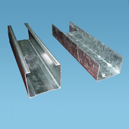 • پروفیل گالوانیزه C50: این پروفیل نوع باز است و برای اینکه سازه وزن کمتری پیدا کند در قسمت هایی مانند سقف کاذب، پارتیشن بندی و بخش دیواره استفاده می شود.
