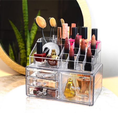 به جای جستوجو در کیفهای آرایشی یا کشوهای نامرتب، میتوانید بهراحتی محصول مورد نیاز خود را پیدا کنید. این ویژگی بهویژه در هنگام آرایش روزانه یا آماده شدن برای مناسبتهای خاص بسیار مفید است.