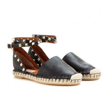 از کفش تخت با کفه کنفی و جنس چرم که روی مچ پا بسته می شود برای تیپ های رسمی استفاده کنید