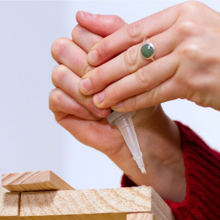 برای جلوگیری از تماس چسب با پوست، هنگام کار با چسب قطرهای از دستکش پلاستیکی استفاده کنید.