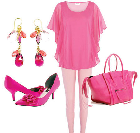 ترکیب صورتی تیره و روشن، به ایجاد تناسب در ست شما کمک زیادی می‌کند. اگر می‌خواهید پرانرژی و شاد به نظر برسید، بهتر است بیشتر بخش‌ها از صورتی تند انتخاب شوند و با یک شلوار صورتی روشن، زیبایی ست خود را دوچندان‌کنید.