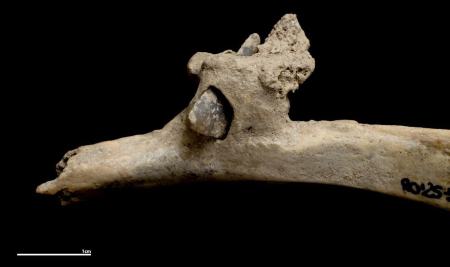 کارلوس تورنرو که سرپرستی تیم کاوشکننده این دنده را در غاری کوهستانی به ارتفاع 1828 متر نزدیک مرز اسپانیا و فرانسه بر عهده داشته، میگوید: «این مدرک مستقیمی از یک رویداد خشونتآمیز و درگیری مسلحانه است.» تیم او این کشف را در تاریخ 8 ژوئیه اعلام کرد.